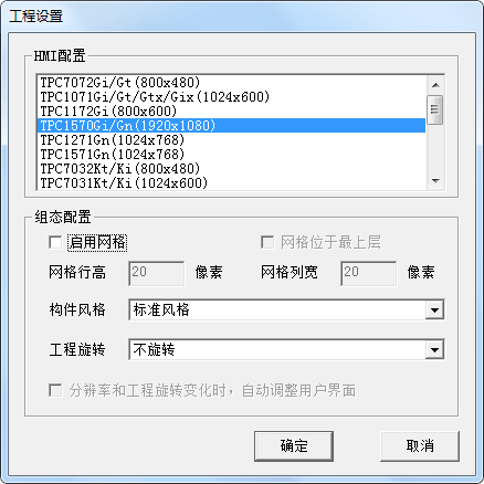組態配置-啟用網格:就是在工程里是不是加入網格,網格不會顯示在實際屏幕上,用于定位尺寸坐標使用;