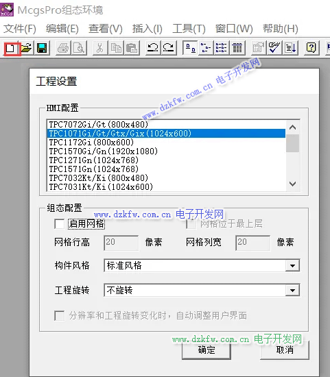 點擊“文件”菜單下的新建工程快捷圖標,選擇TPC1570Gi型號;如圖1所示。