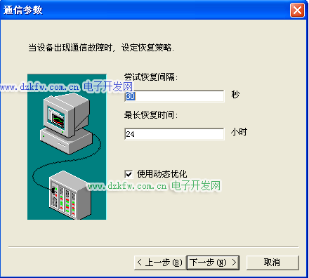 6、設置通信故障恢復參數(一般情況下使用系統默認設置即可),單擊“下一