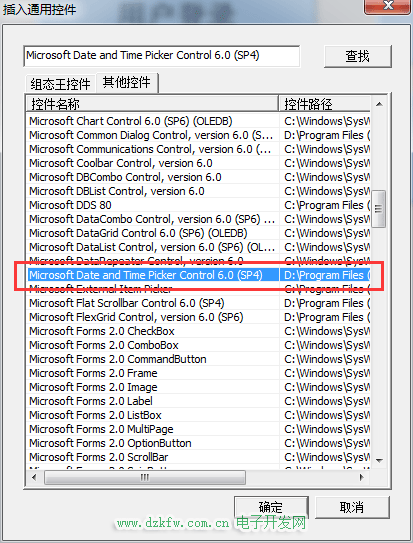時(shí)間控件注冊(cè)完成后,在插入通用控件中會(huì)多出兩項(xiàng),如下圖所示: