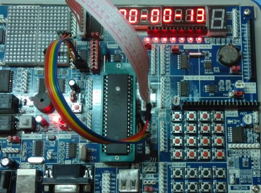 在懂了數碼管的工作原理和控制原理之后,我們現在可以正式編寫時鐘程序了,所謂時鐘就是幾點幾分幾秒用八位數碼管顯示出來,只是它會跳動顯示的數值隨時間變化而變化。一開始我使用的延遲寫的時鐘,每過1s數碼管的秒加一,通過寫的程序運算之后分加一,再后時加一。