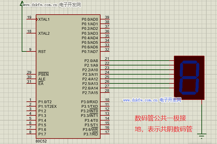 共陰數(shù)碼管,就是公共一極全部接地,如下所示: