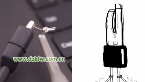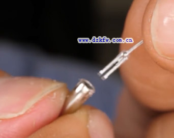 晶振中的石英晶體為一薄片,薄片兩端涂有導電的銀層,并連出兩個電極,如下圖1-1所示為電子手表中所用晶振的內部晶片。
