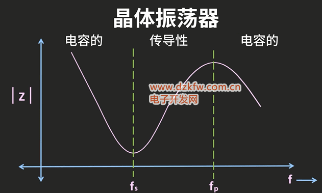 類似于LC諧振電路有自己的諧振頻率,上文所謂的特定頻率就是石英晶體的諧振頻率(固有頻率),而且有兩個,如下圖1-5所示。折兩個諧振頻率分別為fs和fp,其中fp略大于fs。