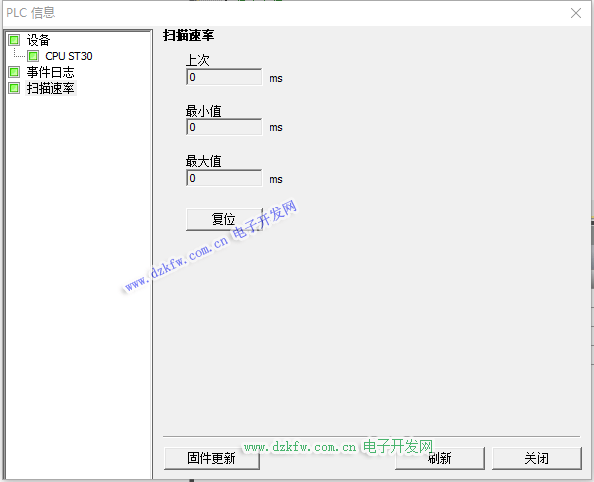 掃描速率頁面可以得到CPU程序實際運行的掃描周期的時間。