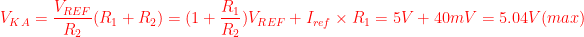 查看手冊可知,Iref最大為4uA,實際VKA便多了一項Iref*R1,mV級別(4uA*10KΩ=40mV)的電壓。