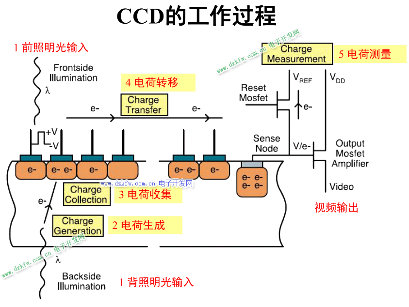 - 行電極和列電極通過電場力定期激勵,將產生的電子從每個像素按順序傳輸到下一個像素,并在CCD的輸出端讀取出來。