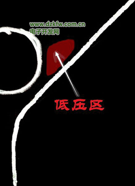 顯然,在用管子對乒乓球的右側吹氣時,氣流按理應該是筆直的方向,這沒有錯,但是,由于高速氣流會有一個吸附作用,它會吸引并帶走乒乓球和高速氣流之間的氣體,從而在那個位置產生一個低壓區。