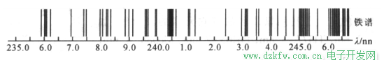 (2)元素標準光譜圖比較法(鐵光譜比較法):最常用的方法,以鐵譜作為標準(波長標尺)。
