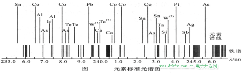 標準譜圖:將其他元素的分析線標記在鐵譜上,鐵譜起到標尺的作用。