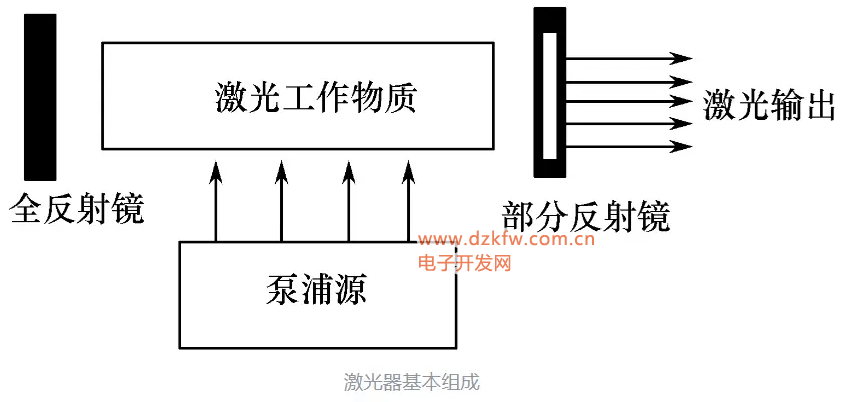 一個激光器最基本的組成是泵浦源、諧振腔和激光工作介質。這里先簡單介紹,各個部件的詳細介紹將放在后面的章節中。