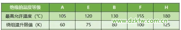 電動(dòng)機(jī)的絕緣等級(jí)是指其所用絕緣材料的耐熱等級(jí),分A、E、B、F、H級(jí)。允許溫升是指電動(dòng)機(jī)的溫度與周圍環(huán)境溫度相比升高的限度。在發(fā)電機(jī)等電氣設(shè)備中,絕緣材料是最為薄弱的環(huán)節(jié)。絕緣材料尤其容易受到高溫的影響而加速老化并損壞。不同的絕緣材料耐熱性能有區(qū)別,采用不同絕緣材料的電氣設(shè)備其耐受高溫的能力就有不同。因此一般的電氣設(shè)備都規(guī)定其工作的最高溫度。
