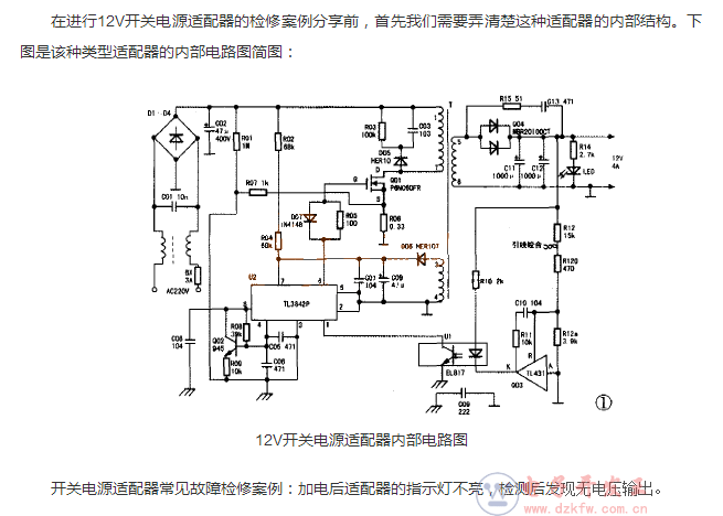 下面給大家來一個12v開關電源維修實例分析,并且給出一些開關電源維修的經驗和技巧分享給大家: