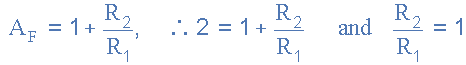 對于非反相放大器電路,其幅度濾波器的電壓增益是反饋電阻( R2 )除以相應的輸入電阻( R1 )值的函數,給出如下:
