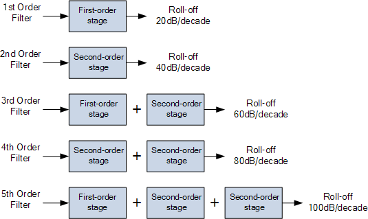 然后一個有效高通濾波器具有偶數序號,僅包含二階濾波器,而奇數階數將從開頭的一階濾波器開始,如圖所示。
