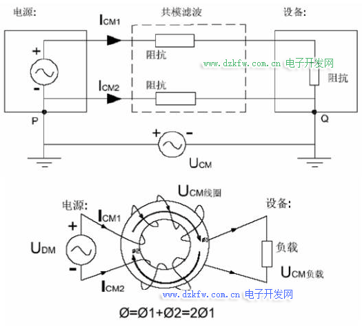如圖,我們可以看到共模的原理圖。UPQ就是共模電壓,ICM1ICM2就是共模電流。
