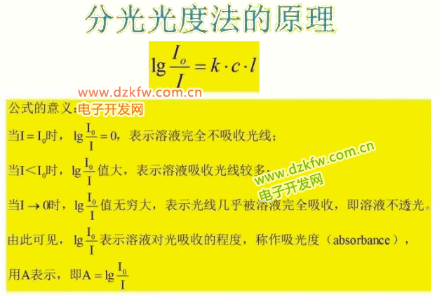 當(dāng)濃度采用摩爾濃度時(shí),k為摩爾吸收系數(shù)。它與吸收物質(zhì)的性質(zhì)及入射光的波長λ有關(guān)。